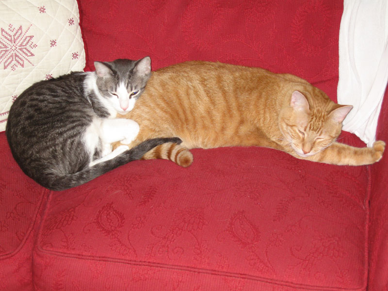 Gus finds a place to rest and then Hank comes along to snuggle - never the other way around!
