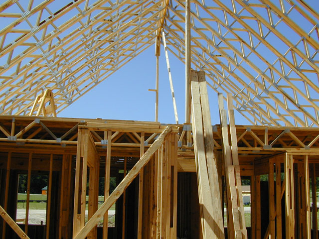 against the second floor trusses.