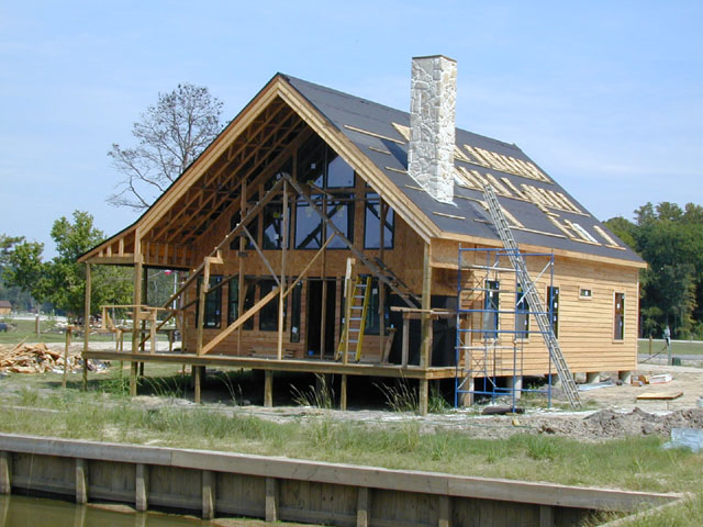 Finally, a shot of the front from across the channel. The second-floor windows are now in place and some of