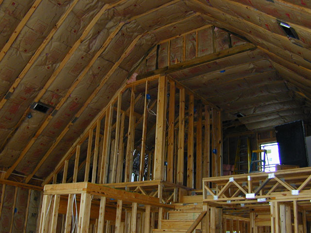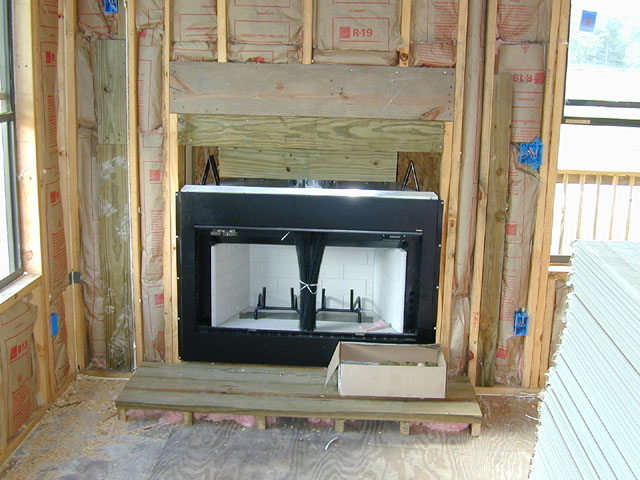 fireplace up to the level of the mantel. Also in this picture you can see insulation in place and