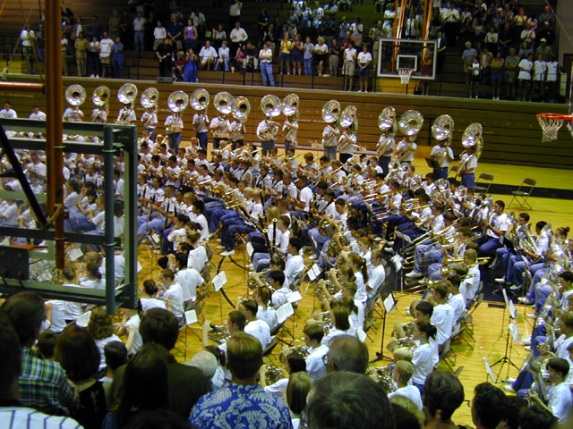 KHS Band in the basketball gym at a late August concert.